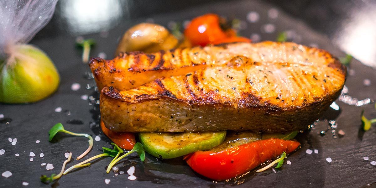 auf tomatisierten Gemüse mit gebratenen Drillingen