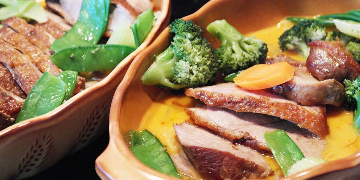 mit herbstlichen Vorspeisen, Kürbiscremesuppe, geschmorte Rehkeule, Hirschroulade, Wildschweinkeule, krosse Ente und Hirschsteaks